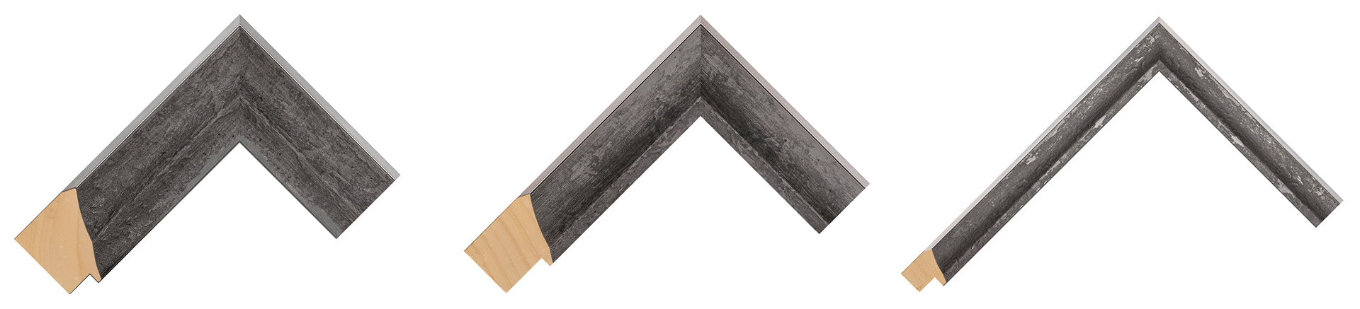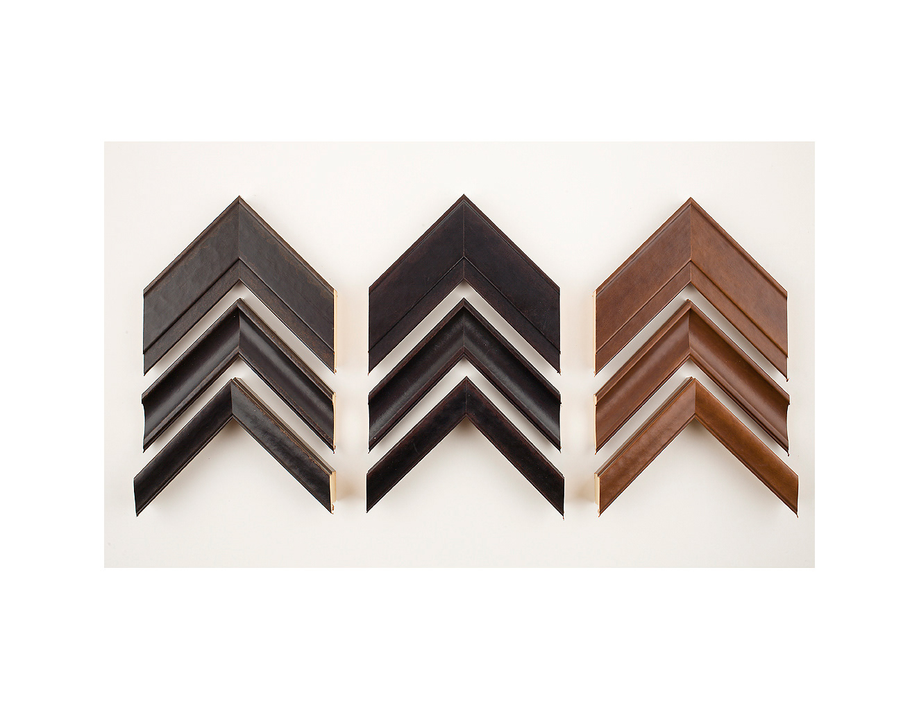 These mouldings will sit beautifully with silver, cream, grey and black mountboards, for example, and will work stacked together as well as individually. The striking black finish of Colosseum, which is created by using patina and layered foils, will complement a vast breadth of interiors.