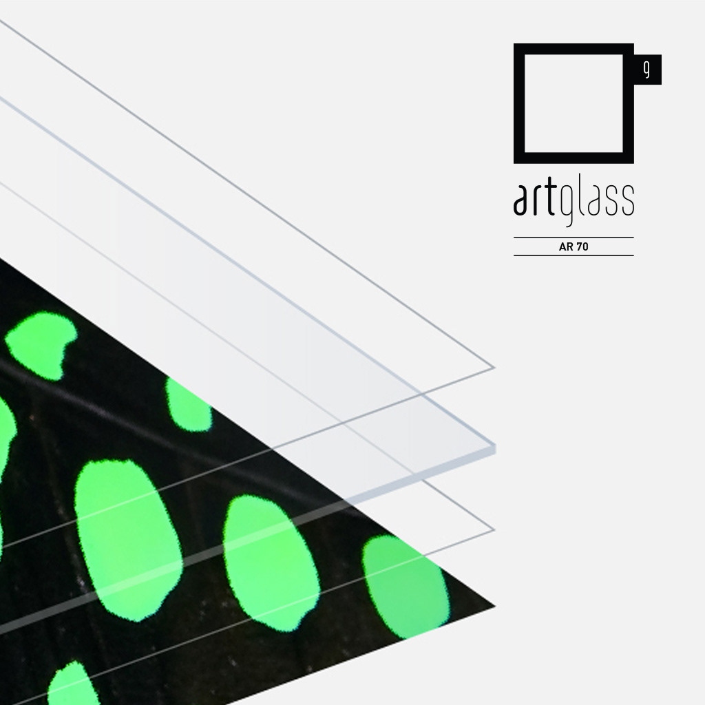 ArtGlass70 glass which is a water white glass and offers crystal clear color transmission with a virtually invisible, anti-reflective surface for truly amazing clarity. Providing 70% UV protection to slow deterioration and help protect your art.